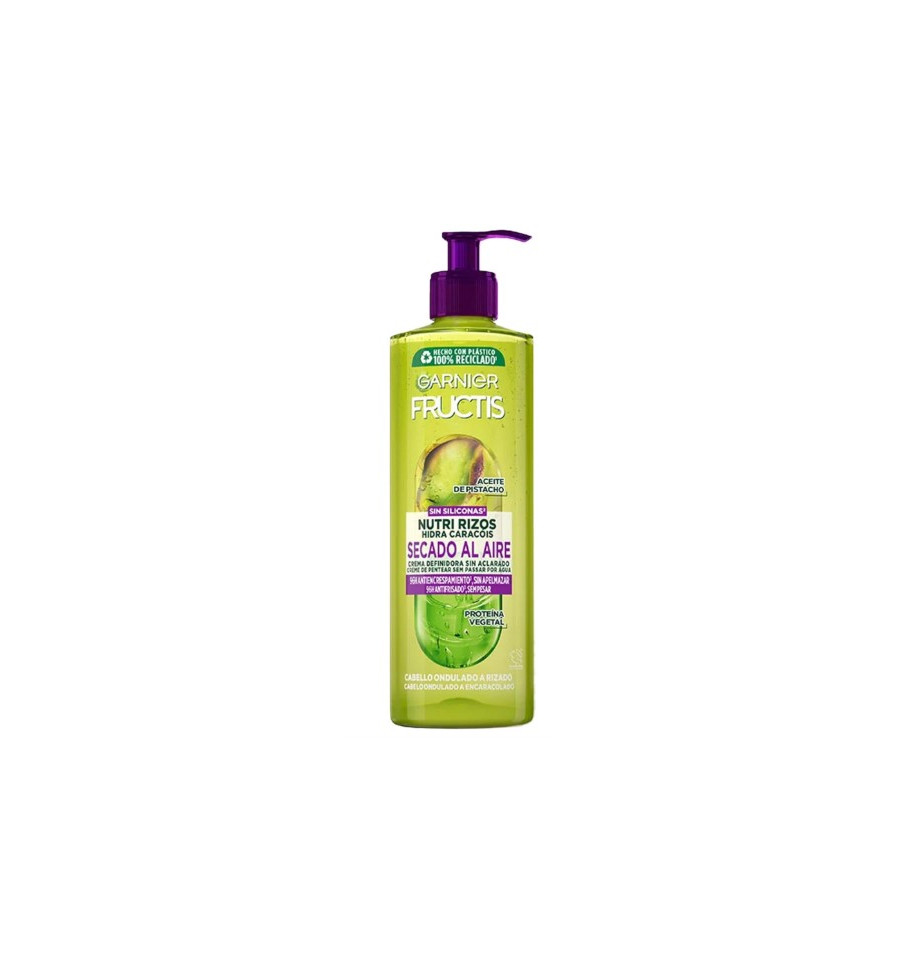 La Crema Sin Aclarado Fructis Nutri Rizos Secado al Aire es una Crema de Peinado enriquecida con aceite de pistacho y pectina de fruta, una molécula que aporta cuerpo a los rizos, para nutrir y mantener los rizos definidos y con movimiento incluso sin secador.