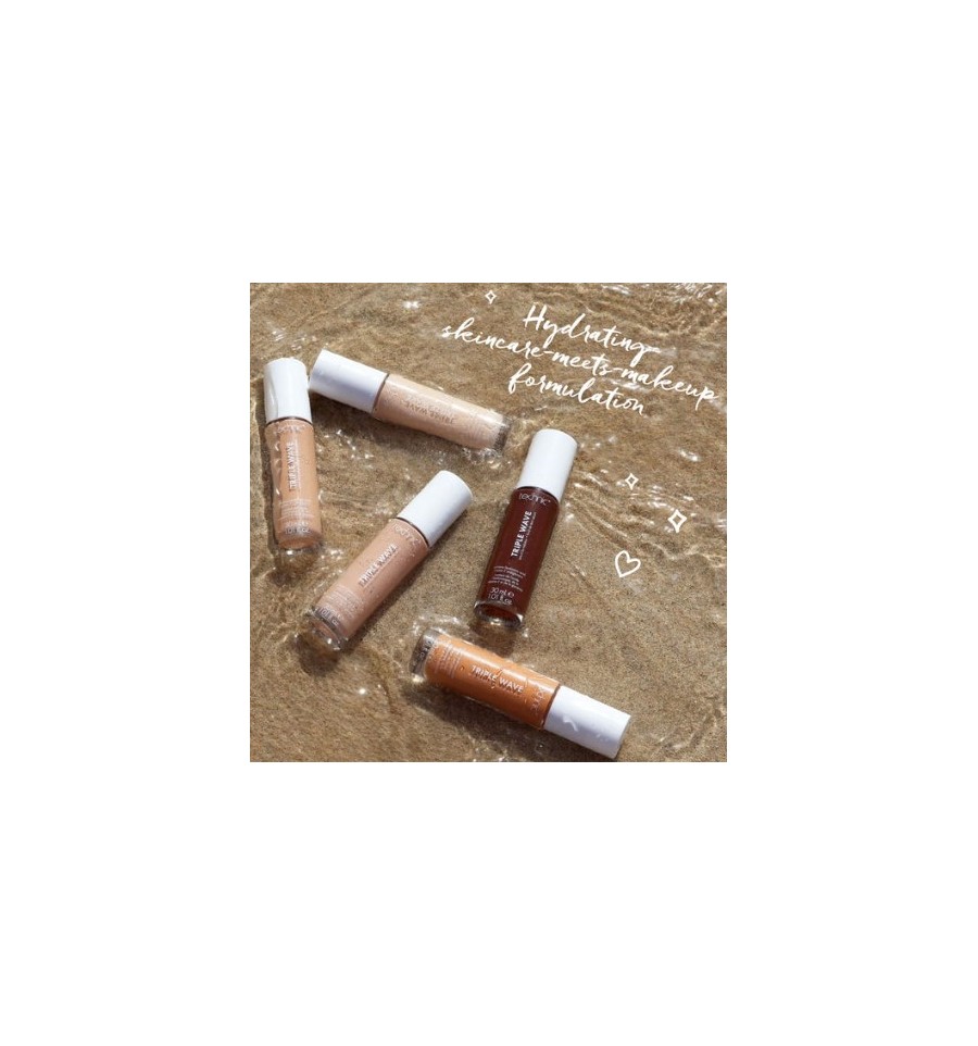 Triple Wave es una base de maquillaje que combina el cuidado de la piel con el maquillaje y está diseñada para integrarse perfectamente en la piel y ayudar a cubrir el tono desigual de la piel y las imperfecciones.