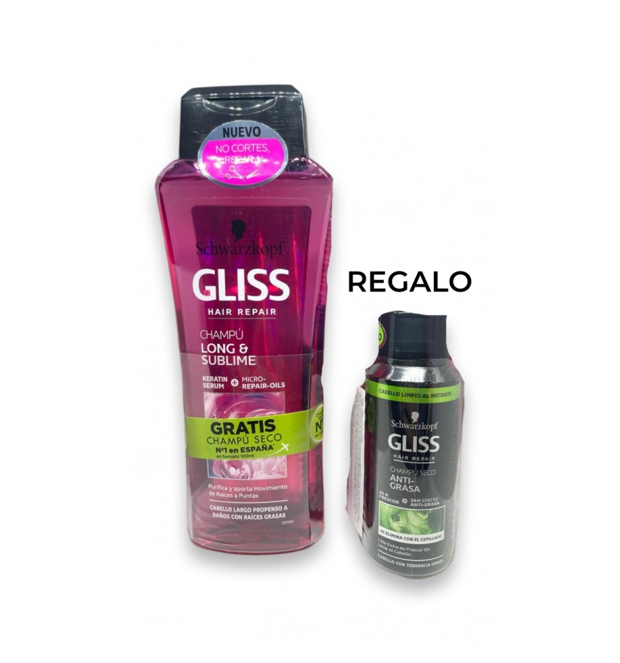 GLISS CHAMPU LONG & SUBLIME 300 ml + REGALO CHAMPU SECO spray 100 ml