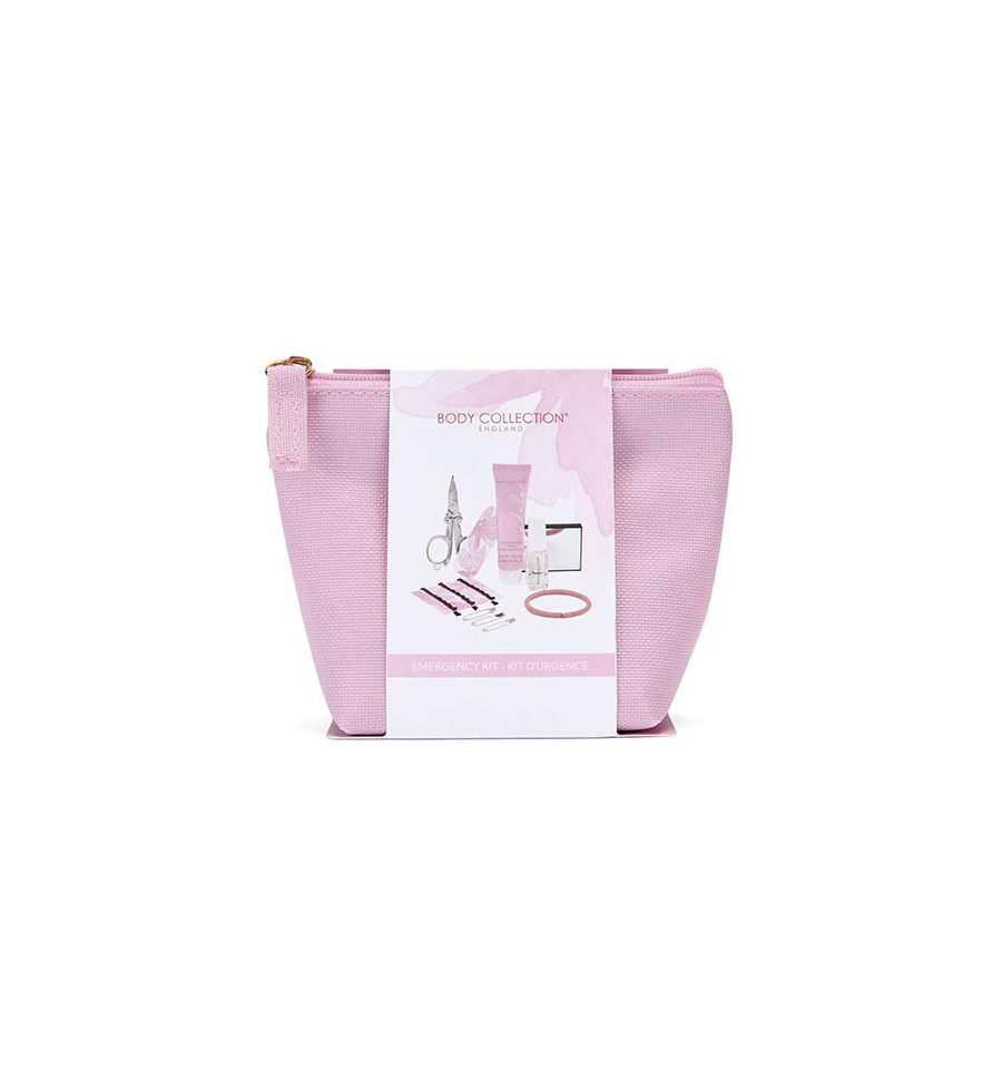 Bonito, portátil y con todo lo esencial para prepararte para cualquier emergencia de belleza. El kit incluye esmalte de uñas transparente, bálsamo multiusos, lima de uñas, horquillas, tijeras plegables, imperdibles, goma para el pelo y un espejo, todo en un minibolso.