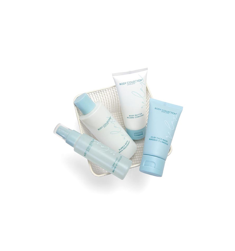 Regala relajación con este encantador set de regalo. Incluye una cesta de alambre reutilizable con todo lo necesario para crear una experiencia de spa en casa, incluyendo una mascarilla facial de arcilla y una manteca corporal, además de un baño de burbujas y una bruma para dormir, ambos con extracto relajante de lavanda.