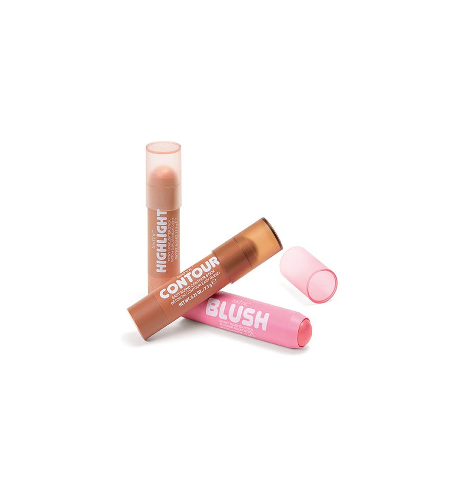 Consigue un brillo radiante y definido con este set de 3 piezas: un rubor iluminador modulable, un iluminador en crema difuminable y una barra de contorno supercremosa. Estas fórmulas de ensueño se deslizan fácilmente y se funden con tu piel.