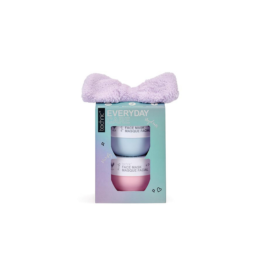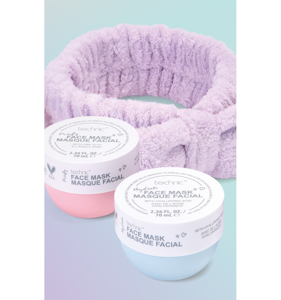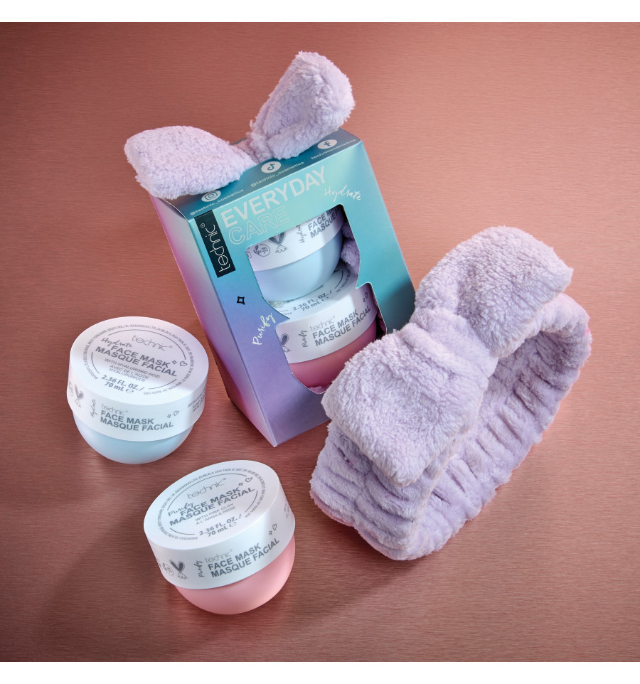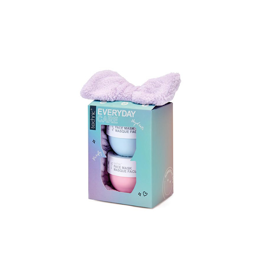 Regala una piel radiante con el set de regalo de mascarillas faciales Technic. Contiene dos mascarillas faciales con ácido hialurónico hidratante y arcilla rosa purificante.