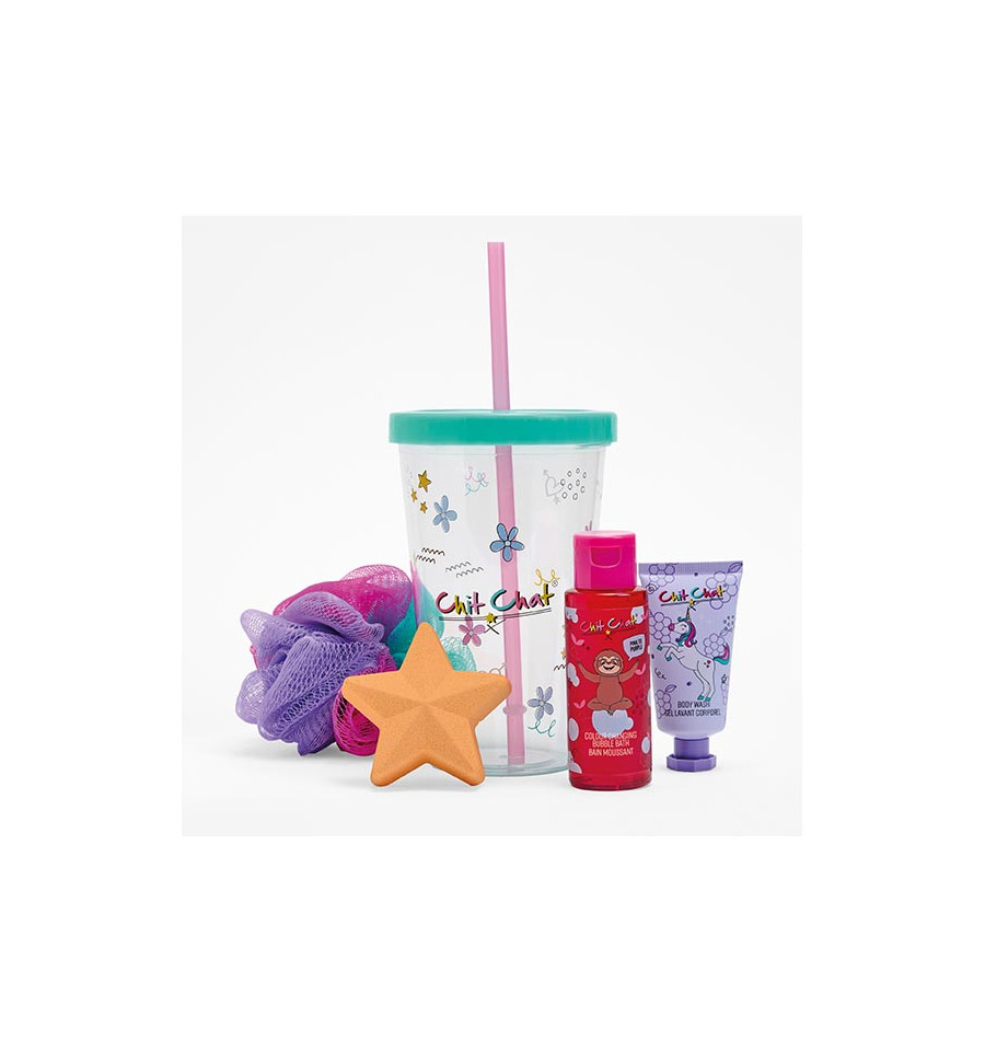 ¡Burbujas, diversión y sonrisas! ¡Llegó el Bubble Cup con tus artículos de baño favoritos! Incluye una esponja de ducha, un gel de ducha, un baño de burbujas que cambia de color y un efervescente.