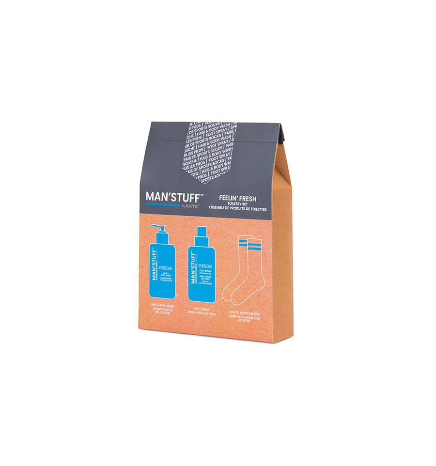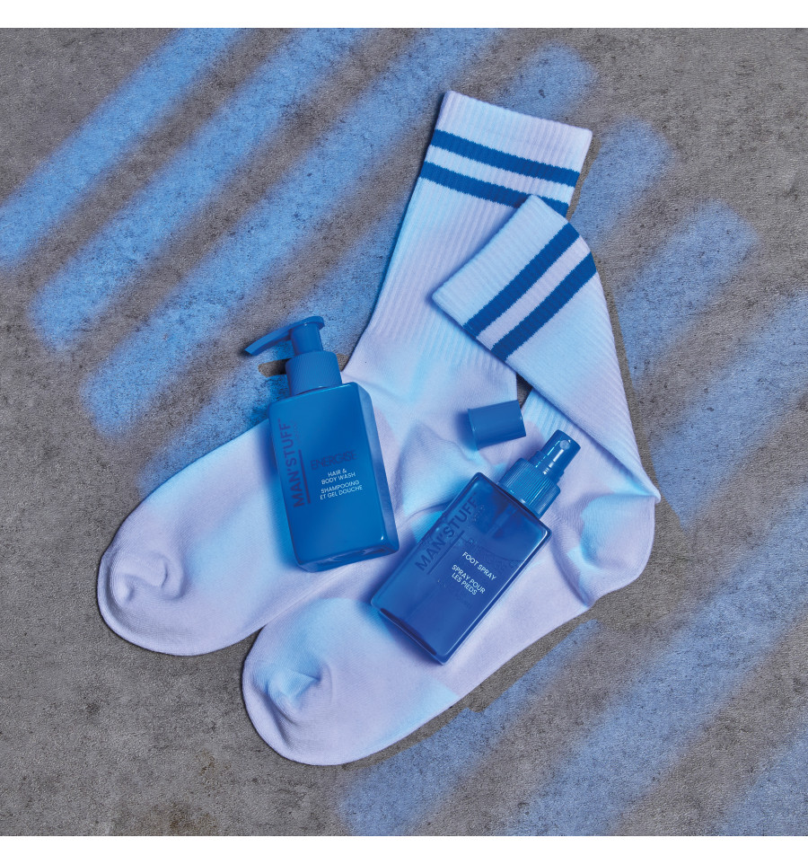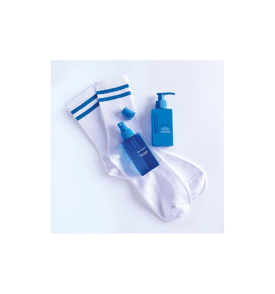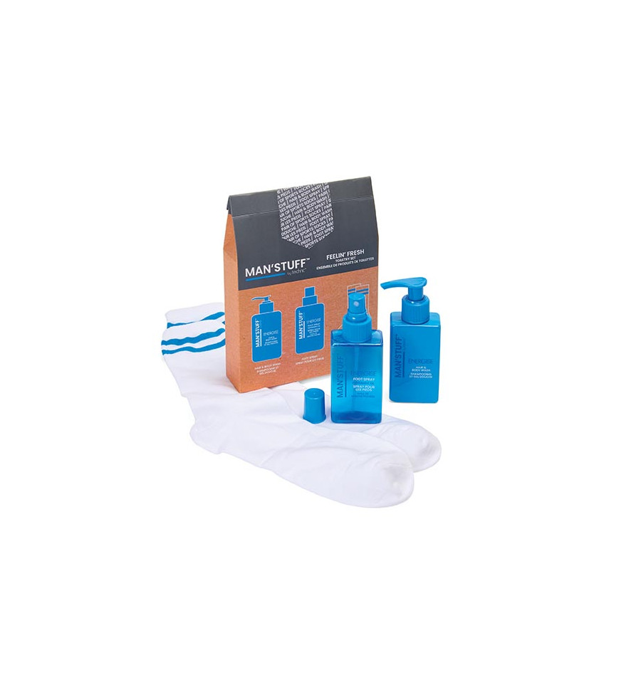 Un trío ideal para estilos de vida activos. Incluye un gel de ducha para cabello y cuerpo que refresca de pies a cabeza, además de un espray de menta para pies que refresca y revitaliza los pies cansados. También incluye un par de calcetines deportivos para mayor comodidad y sujeción durante todo el día.