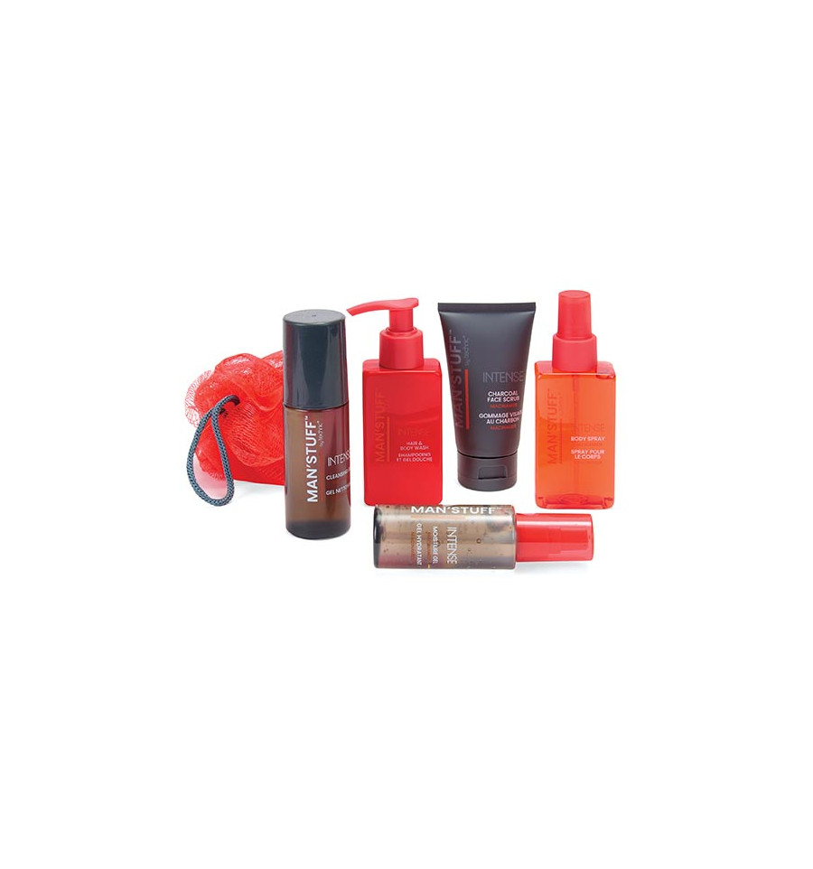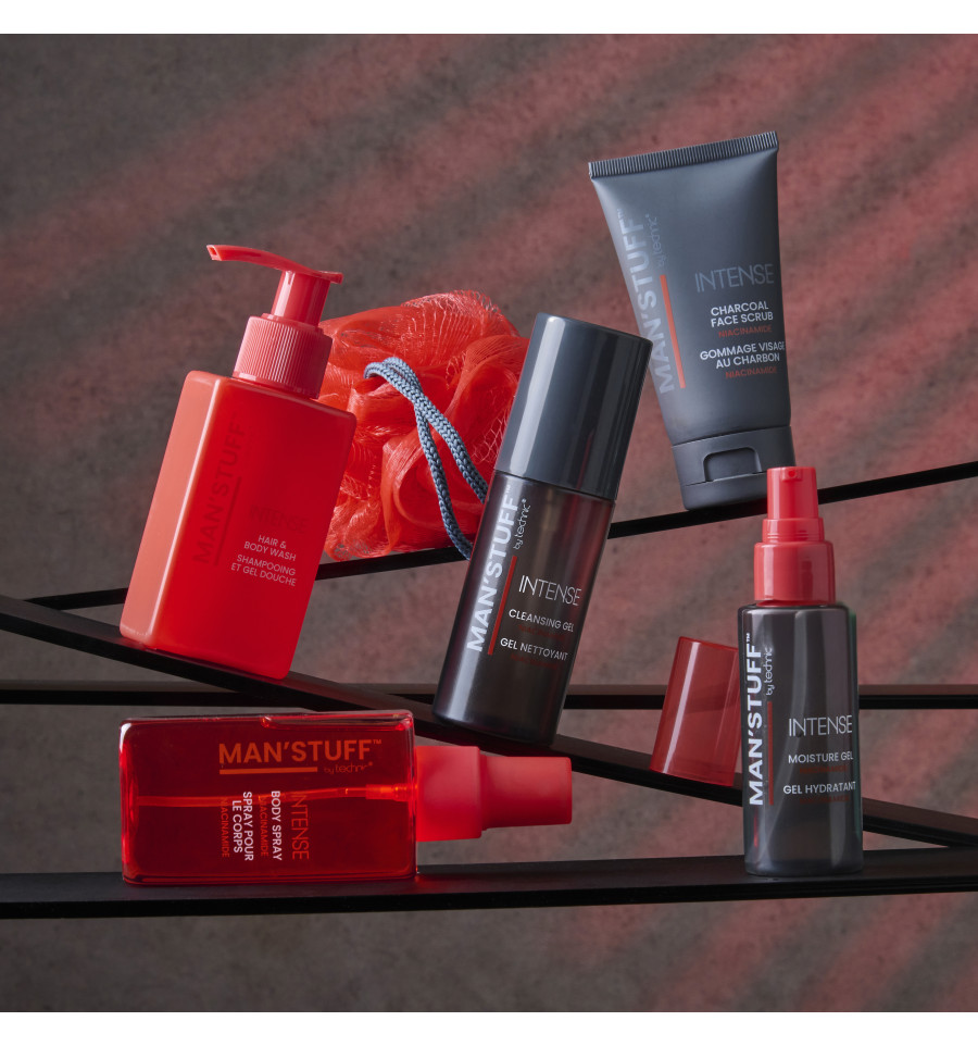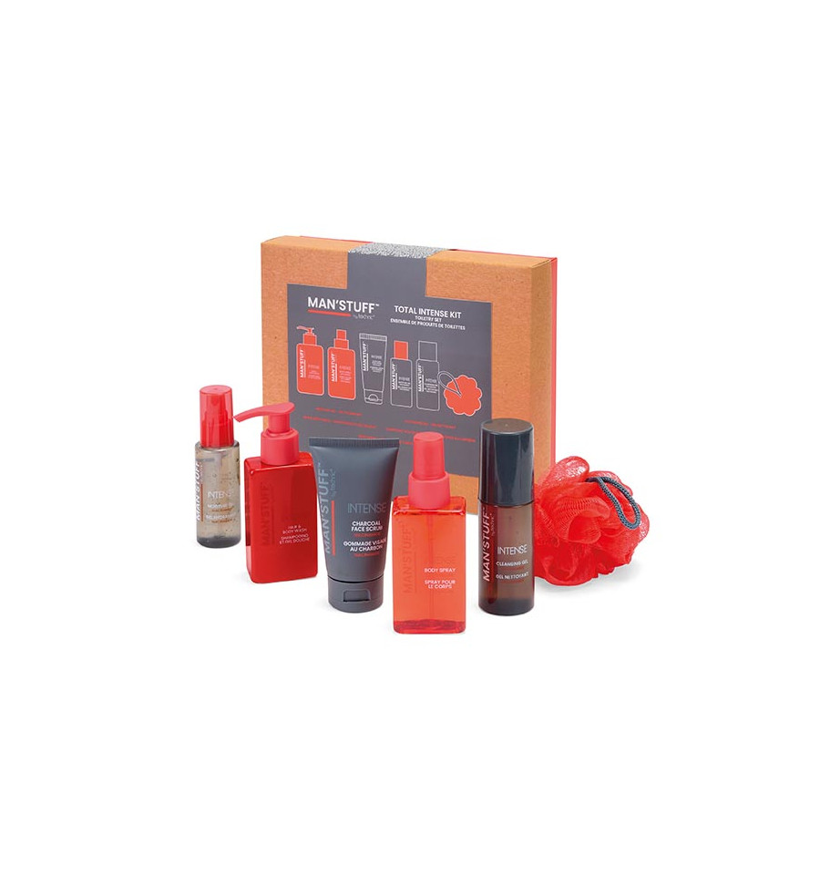 Regala estilo y confianza sin esfuerzo con esta colección completa de productos esenciales diseñados para que se vea y se sienta de maravilla. El set de regalo Total Intense incluye un gel limpiador, un gel hidratante y un exfoliante facial de carbón, todos con niacinamida añadida. Para completar el set, el gel de baño Intense para cabello y cuerpo con una rica fragancia a sándalo, además de un spray corporal con un aroma fresco y una esponja de ducha para maximizar la espuma.