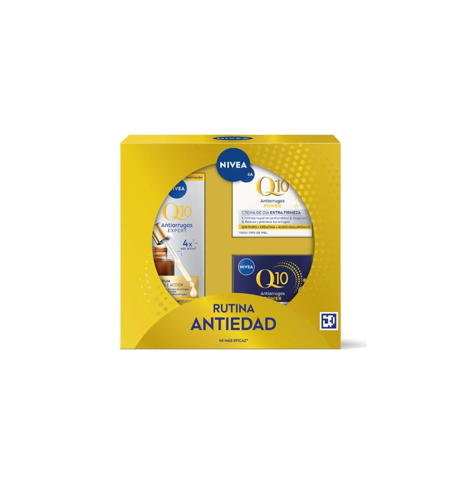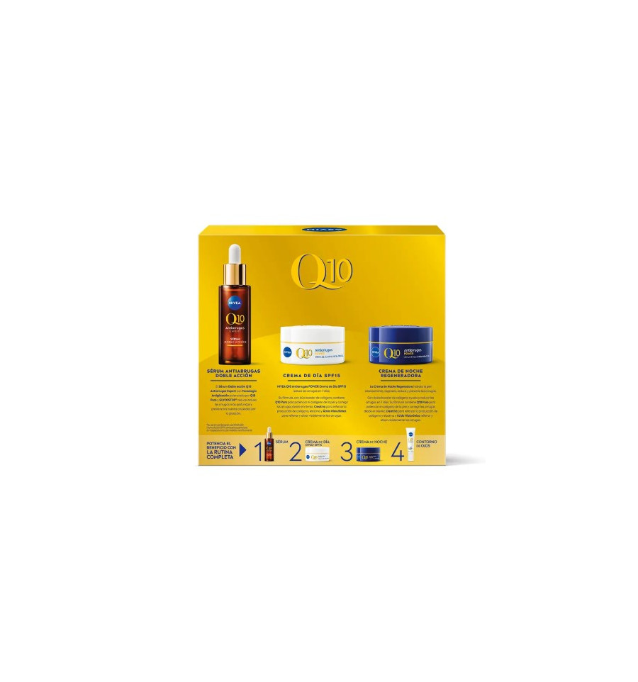 Q10 Antiarrugas POWER Crema de Día SPF15: NIVEA Q10 Antiarrugas POWER Crema de Día SPF15 reduce las arrugas en 7 días. Su fórmula, con dúo booster de colágeno, contiene Q10 Puro para potenciar el colágeno de la piel y corregir las arrugas desde el interior, Creatina para reforzar la producción de colágeno y elastina y Ácido Hialurónico rellenar y alisar visiblemente las arrugas. 50 ml