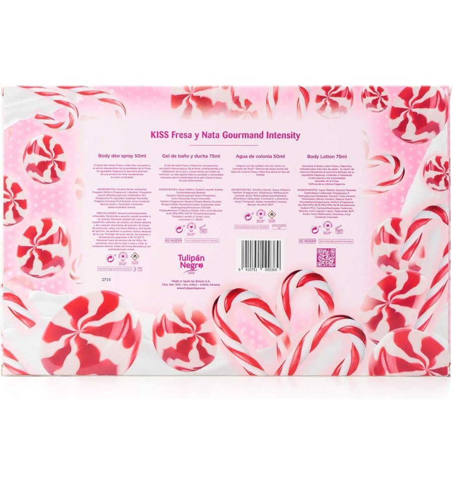TULIPÁN NEGRO KISS FRESA Y NATA EDT 50 ml SPRAY + GEL 75 ml + BODY LOTION 75 ml + DEO SPRAY 50 ml
