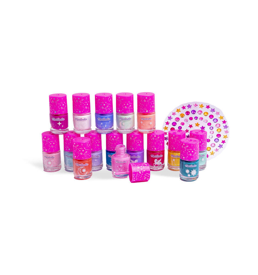 ¡Embellece tus uñas con el Galaxy Dreams: Sparkling Nail Art Set! Este fabuloso set incluye 16 esmaltes de uñas en una variedad de colores y gemas adhesivas para decorar. Perfecto para los pequeños soñadores, este set les permite explorar su creatividad y estilo personal mientras se divierten. Con una amplia gama de tonos y decoraciones brillantes, pueden crear looks únicos y deslumbrantes. Con el Galaxy Dreams: Sparkling Nail Art Set, cada día es una nueva oportunidad para brillar y expresar su imaginación. ¡Haz que sus uñas sean tan mágicas como ellos!
