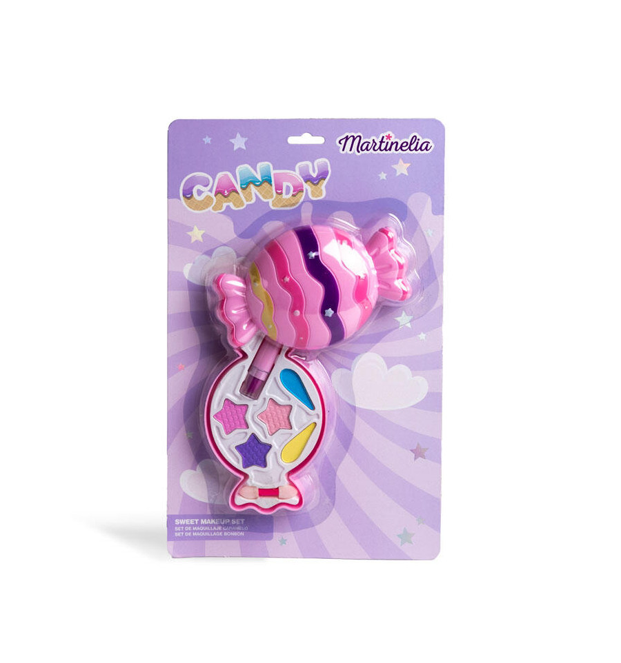 Dale un toque de dulzura a tu rutina de maquillaje con nuestra irresistible paleta de sombras en forma de caramelo de la exclusiva colección Candy. Este encantador set consta de: 5 sombras de ojos en una gama de tonos deliciosos y vibrantes, ideales para crear looks divertidos y llamativos. 1 lipstick en un tono dulce y jugoso, perfecto para poner el broche final a tu maquillaje con un estallido de color y brillo.