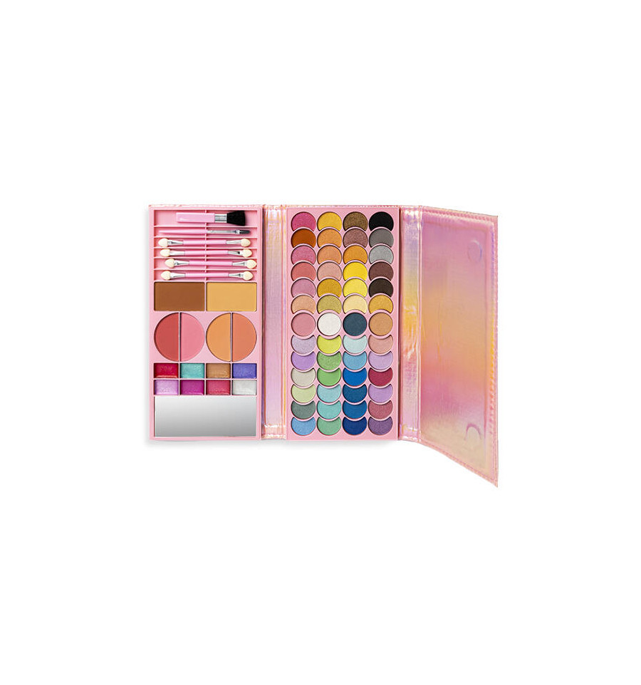 Siéntete como una sirena con esta paleta de maquillaje holográfico con una cola de sirena 3D. Gracias a su compacto formato es ideal para llevar a cualquier sitio y disfrutar de una tarde de maquillaje sin fin. Incluye cincuenta-y-dos sombras de ojos de todos los colores del arcoíris, ocho brillos de labios, seis polvos compactos, seis aplicadores y un espejo.