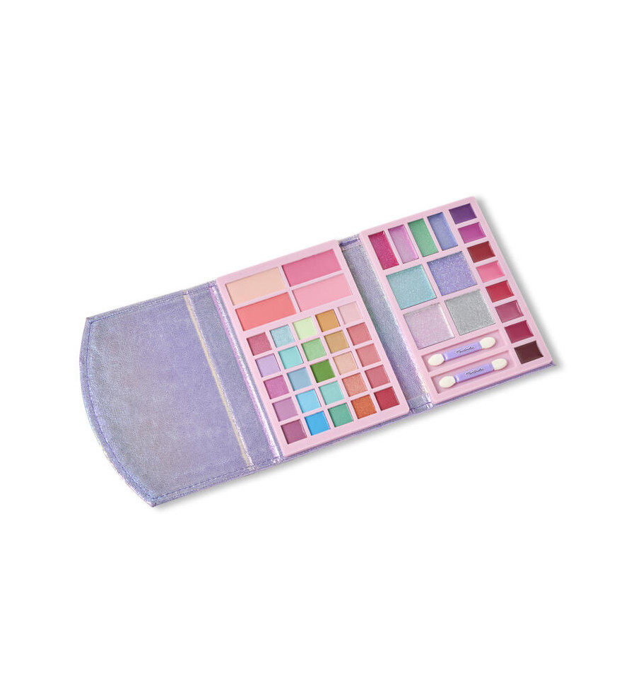 ¡Desata la imaginación de los príncipes y princesas de la casa con esta increíble cartera de viaje con maquillaje protagonizada por un divertido unicornio! Contiene 25 sombras de ojos con y sin purpurina, 8 cremas con purpurina, 4 coloretes, 8 bálsamos labiales y 2 aplicadores.