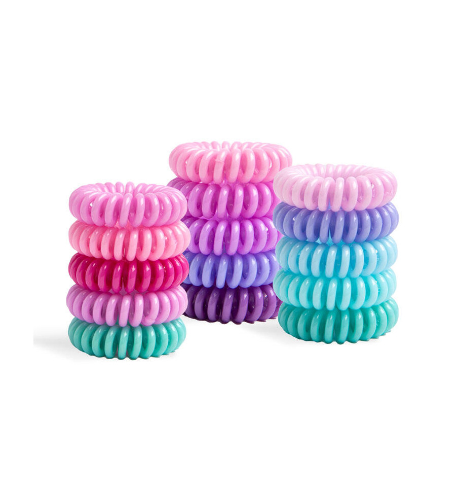 Pack de 5 gomas para el cabello en espiral. Gracias a su formato no dejan marca en el pelo.