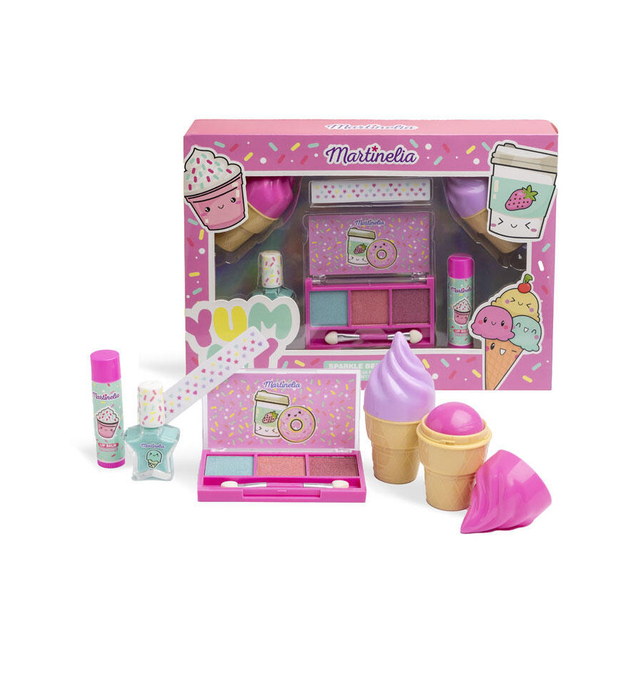 Descubre la magia del maquillaje con el MARTINELIA YUMMY SPARKLE BEAUTY SETt. Este encantador set incluye una paleta de sombras de ojos con tres colores y aplicador, dos brillos labiales, un bálsamo labial, un esmalte de uñas y divertidos stickers para decorar. Perfecto para los más pequeños, este kit les permitirá explorar su creatividad y añadir un toque de brillo a su rutina diaria. ¡Haz que cada día sea especial con el Sparkle Beauty Kit de Yummy Delights!