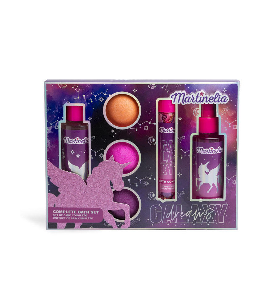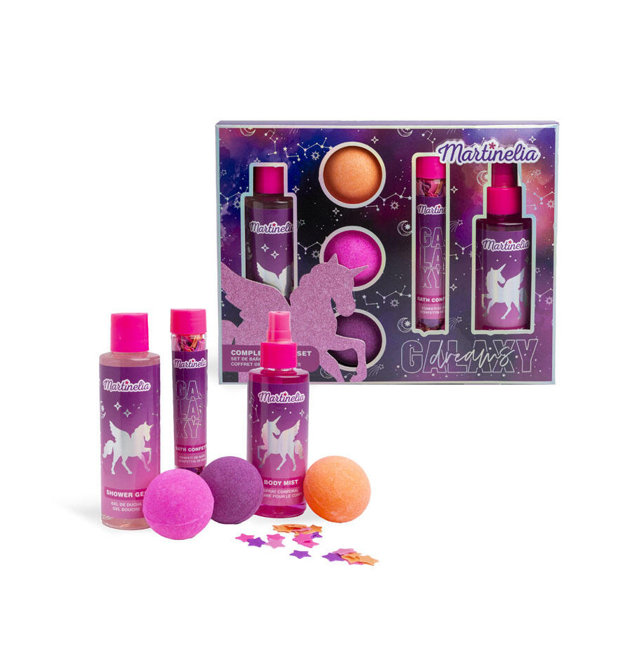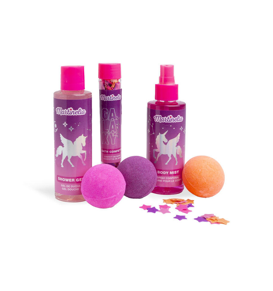¡Transfórmate y relájate con el Galaxy Dreams: Cosmic Bath Delight! Este encantador set incluye confeti de baño, un body mist, un gel de ducha y 3 bombas de baño. Perfecto para los pequeños soñadores, este set convierte la hora del baño en una experiencia mágica y celestial. El confeti de baño y las bombas de baño llenan la bañera de colores y fragancias encantadoras, mientras que el gel de ducha limpia suavemente y el body mist deja la piel perfumada y refrescada. Con el Galaxy Dreams: Cosmic Bath Delight, cada baño es una nueva oportunidad para sumergirse en un mundo de fantasía y relajación. ¡Haz que la hora del baño sea tan mágica como ellos!