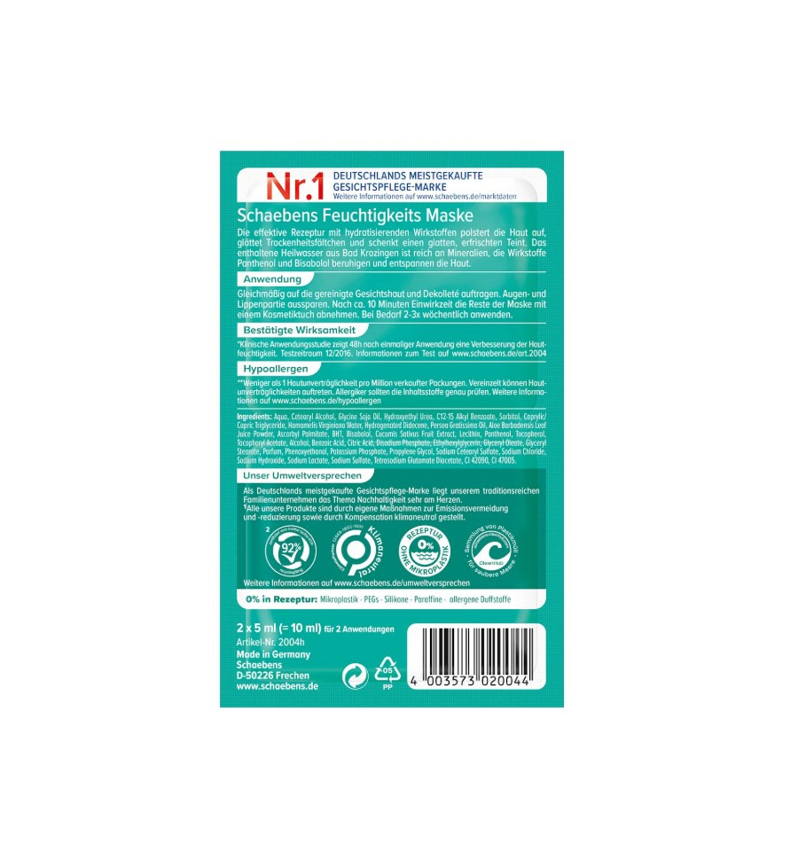 Schaebens Mascarilla facial hidratante de efecto instantáneo 2 x 5 ml