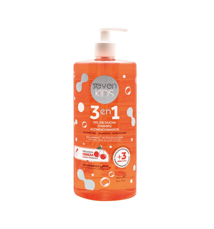 Protege, limpia e hidrata suavemente. El 3 en 1 de SEVEN KIDS está especialmente formulado para cuidar la piel y el pelo de niños a partir de 3 años.