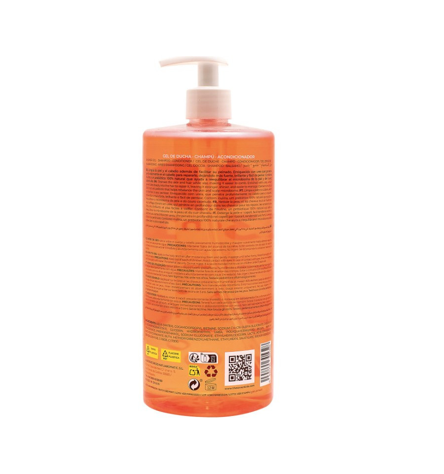 Contiene inulina, un prebiótico 100% natural que ayuda a reequilibrar el microbioma de la piel y del cuero cabelludo. Actúa como un acondicionador natural y ligero, formando una película sobre la superficie de la piel y del cabello conservando su humedad, gracias a su gran capacidad de absorción de agua.